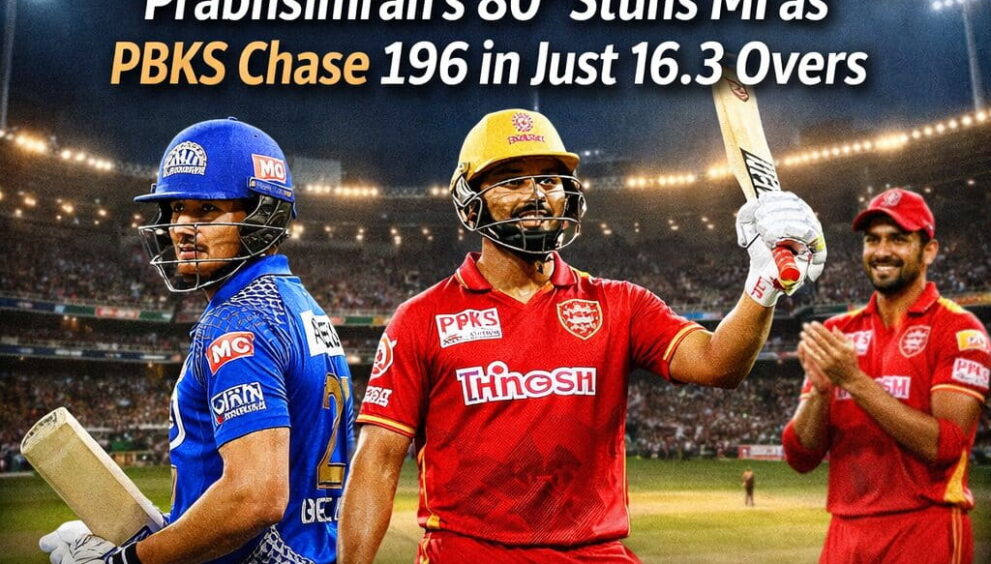 The MI vs PBKS IPL 2026 match highlighted modern T20 dominance, where aggressive batting led by Prabhsimran Singh and Shreyas Iyer helped Punjab Kings chase down 196 with ease. Mumbai Indians relied heavily on Quinton de Kock’s century but lacked bowling support, resulting in a one-sided finish.